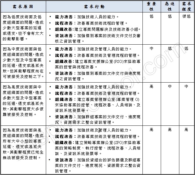 表2.2:促使專案管理制度導入的需求原因