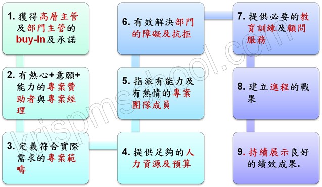 | 專案管理制度導入系列文章 > 6. 甚麼是PM制度導入的關鍵成敗因素? |