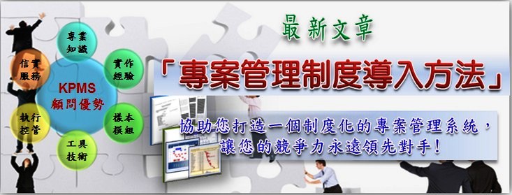 在台灣,除了那些以專案為主要營運作業的公司外,如工程、軟體,營建,及研發公司等,似乎沒有幾家公司導入專案管理制度。就算是導入了,也大多侷限於簡單工具或表單的應用。對大部份的企業組織而言,專案管理似乎僅是口號式的原則及需求。
