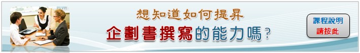 >> 更多企劃書撰寫實務課程訊息 <請按此> |